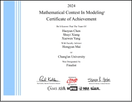 附:美国大学生数学建模竞赛(MCM/ICM)由美国数学及其应用联合会主办,每年举办一届,设有特等奖(O奖)、特等提名奖(F奖)、一等奖(M奖)、二等奖(H奖)、成功参赛奖(S奖)以及单项奖若干,是唯一的国际性数学建模竞赛,也是世界范围内最具影响力的数学建模竞赛。