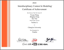 图2: 365英国上市网站官网2024年美国大学生数学建模竞赛F奖获奖证书