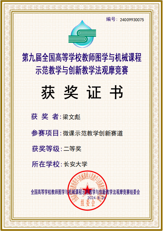 8月23日至26日,第九届全国高等学校教师图学与机械课程示范教学与创新教学法观摩竞赛在山东交通学院举行。我校365英国上市网站官网工程图学系青年教师梁文彪荣获微课示范教学创新赛道二等奖。
