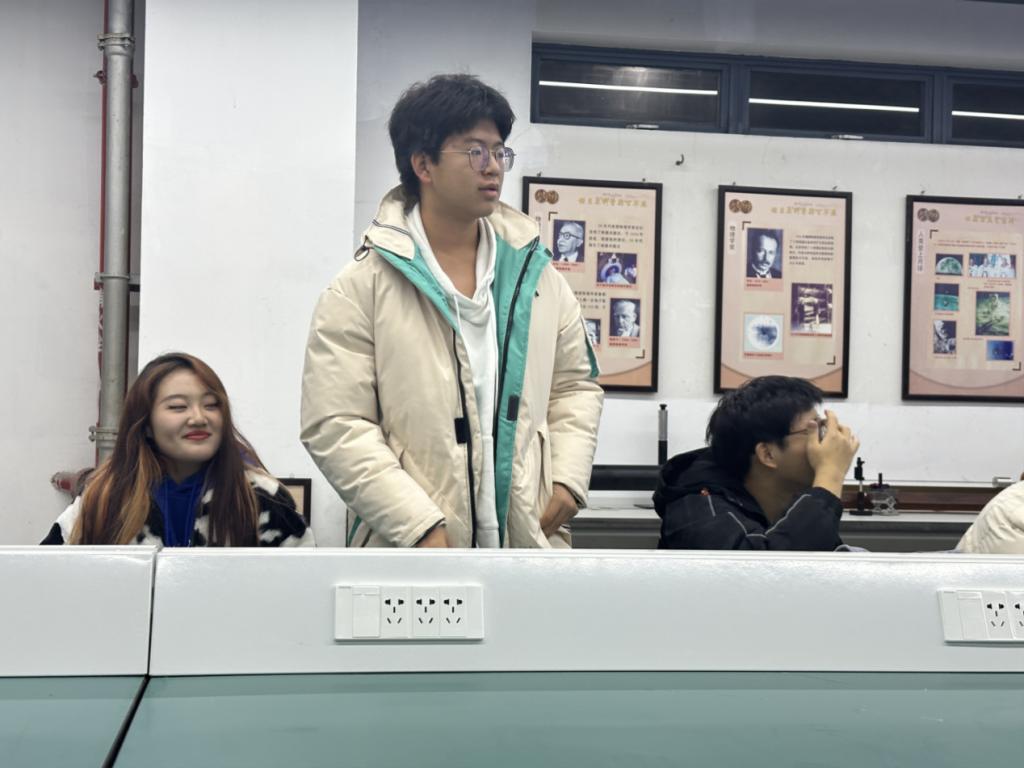 第二阶段,侯兆阳、王凤龙两位导师分别就本专业学生现阶段学习状态和实验室安全两个方面与同学们展开讨论。同学们反映,大学生活对自觉性的要求较高,但自身的时间管理方面还存在问题。侯兆阳借此指出引起大学生学习方面出现问题的三道红线:作息问题、游戏问题和手机问题,并通过具体案例:“睡懒觉旷课成习惯”“沉迷游戏无心学习”“熬夜刷短视频”等最终导致学业荒废。随后他强调了“自律”及“坚持”的重要性,指出大学阶段的学习过程需要持之以恒的动力,做好时间管理,严格要求自己,营造良好学风,促进自身的全面发展。随后王凤龙讲解了实验室相关安全规定,包括电闸的使用方法、用电器的使用规范等,强调实验室内禁止使用大功率用电器,希望同学们在实验室内遵守安全第一的准则,提高安全意识,通晓实验室安全知识,掌握实验室安全操作技能,做好安全防护。
